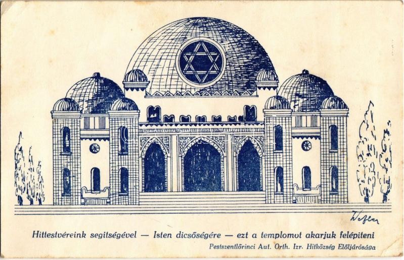 Budapest XVIII. Pestszentlőrinci Autonóm Orthodox Izraelita Hitközség Elöljárósága által tervezett zsinagóga. Hittestvéreink segítségével - Isten dicsőségével - ezt a templomot akarjuk felépíteni. Judaika (EK)