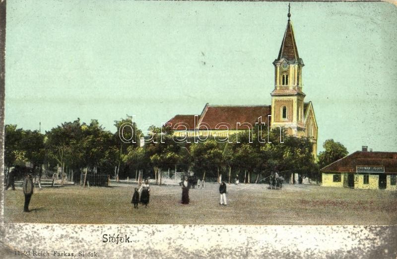 Leírás: Siófok, Római katolikus templom, Horváth János üzlete. Kiadja Reich Farkas (EK)