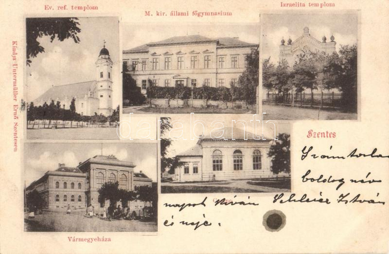 Szentes, Mozaik képeslap zsinagógával; kiadja Untermüller Ernő https://www.darabanth.com/hu/356-Gyorsarveres/356.0/Kepeslapok/Magyarorszag~1500005/Szentes-Mozaik-kepeslap-zsinagogaval-kiadja-Untermuller-Erno~II1377391