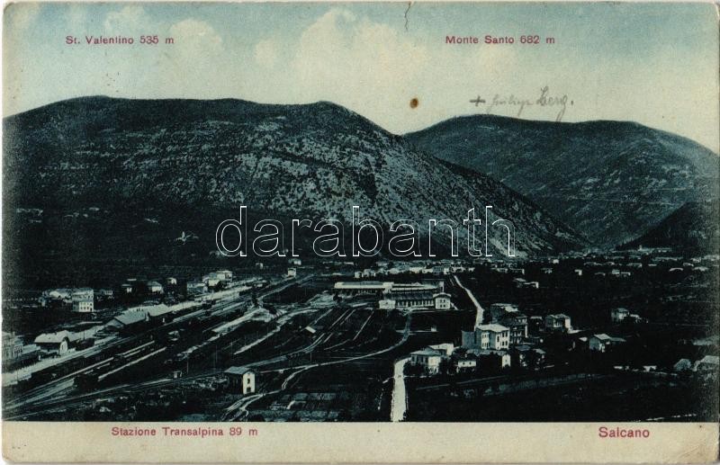 Leírás: Solkan, Salcano; Stazione Transalpina / railway station, trains, mountains (kis szakadás / small tear)