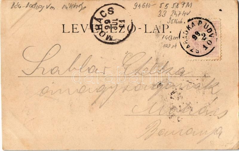 Leírás: 1899 Szabadka, Subotica; Szentháromság szobor, Batthyány utca, Grünbaum Mór üzlete. Kiadja Vig Zsigm. Sándor 168. / Holy Trinity statue, street view, shops + "SZABADKA P.UDV." (EK)