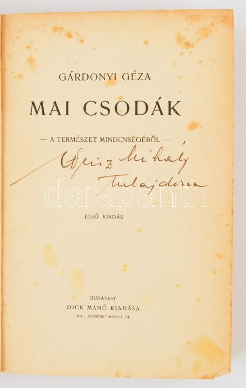 Gárdonyi Géza: Mai csodák. A természet mindenségéből. Bp., é.n, Dick M... https://www.darabanth.com/hu/356-Gyorsarveres/356.0/Konyvek/Konyvek-Egyeb-ritkasagok~1000020/Gardonyi-Geza-Mai-csodak-A-termeszet-mindensegebol-Bp-en-Dick-Mano-Elso-kiadas-C3~II2037327