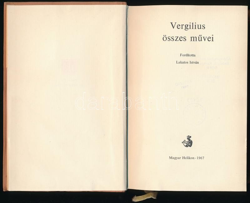 Vergilius összes művei. Fordította: Lakatos István. Helikon Klasszikus... https://www.darabanth.com/hu/356-Gyorsarveres/356.0/Konyvek/Konyvek-Egyeb-ritkasagok~1000020/Vergilius-osszes-muvei-Forditotta-Lakatos-Istvan-Helikon-Klasszikusok-Bp-1967-Magyar-Heli~II2009223