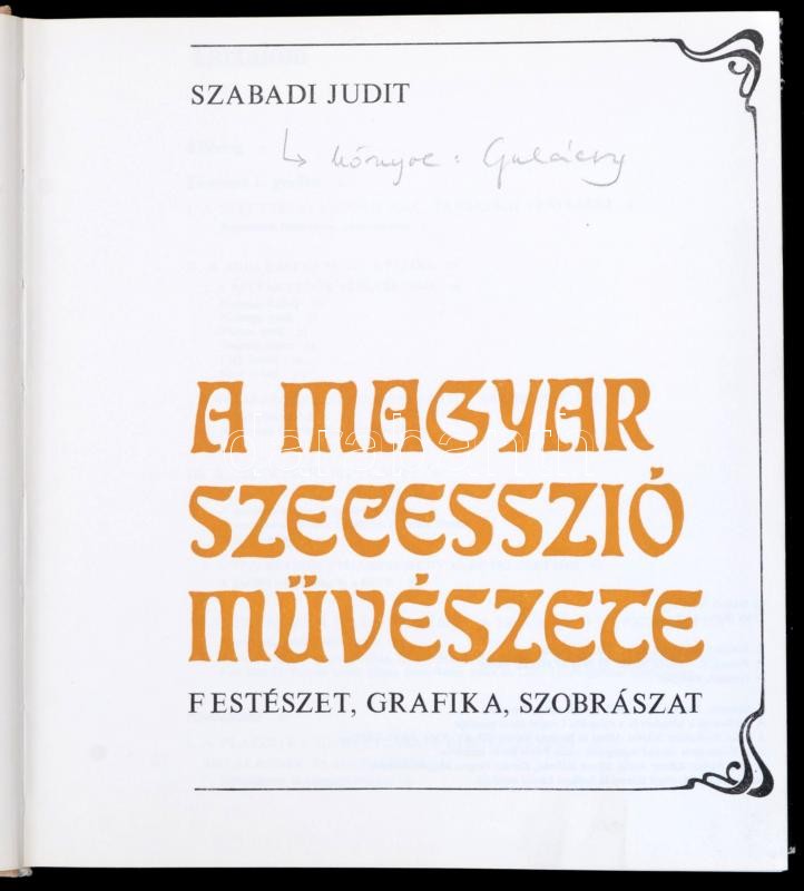 Leírás: Szabadi Judit: A magyar szecesszió művészete. Festészet, grafika, szobrászat. Bp., 1979, Corvina Kiadó. Kiadói egészvászon-.kötés, kiadói papír védőborítóval, jó állapotban.