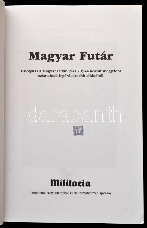 Leírás: Józsa Béla (szerk.): Magyar Futár- Válogatás a M. F. 1941-44 között megjelent cikkeiből. Militaria, 2000