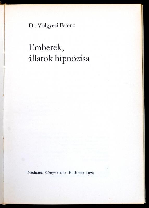 Dr. Völgyesi Ferenc: Emberek, állatok hipnózisa. Bp.,1973, Medicina. K... https://www.darabanth.com/hu/356-Gyorsarveres/356.0/Konyvek/Konyvek-Termeszettudomany-medicina~1000009/Dr-Volgyesi-Ferenc-Emberek-allatok-hipnozisa-Bp-1973-Medicina-Kiadoi-papirkotes~II2043071