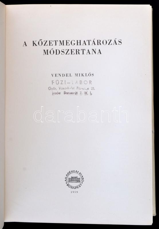 Vendel Miklós: A kőzetmeghatározás módszertana. Bp.,1959, Akadémiai Ki... https://www.darabanth.com/hu/356-Gyorsarveres/356.0/Konyvek/Konyvek-Termeszettudomany-medicina~1000009/Vendel-Miklos-A-kozetmeghatarozas-modszertana-Bp-1959-Akademiai-Kiado-Kiadoi-egeszvas~II2034130