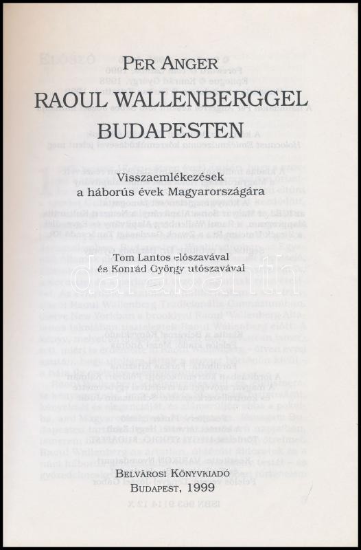 Anger, Per: Raoul Wallenberggel Budapesten. Tom Lantos előszavával és Konrád György utószavával. Bp., 1999, Belvárosi Könyvkiadó. Kiadói papírkötés, jó állapotban.