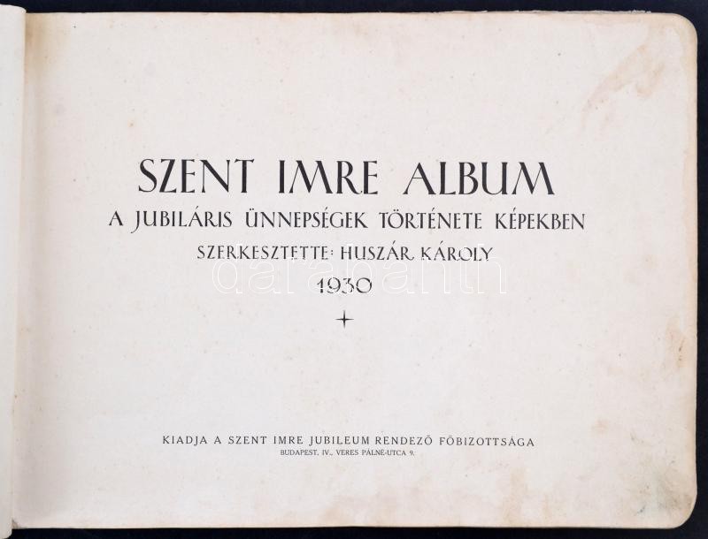 Huszár Károly (szerk.): Szent Imre album. A jubiláris ünnepségek története képekben. Bp., 1930 Szent Imre Jubileum Rendező Főbizottsága. Kiadói papírkötés, kissé kopottas állapotban