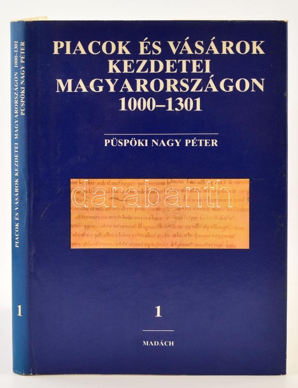 Püspöki Nagy Péter: Piacok és vásárok kezdetei Magyarországon 1000-1301. I. kötet. Bratislava, 1989, Madách Könyv- és Lapkiadó. Kiadói egészvászon kötés, papír védőborítóval, jó állapotban.