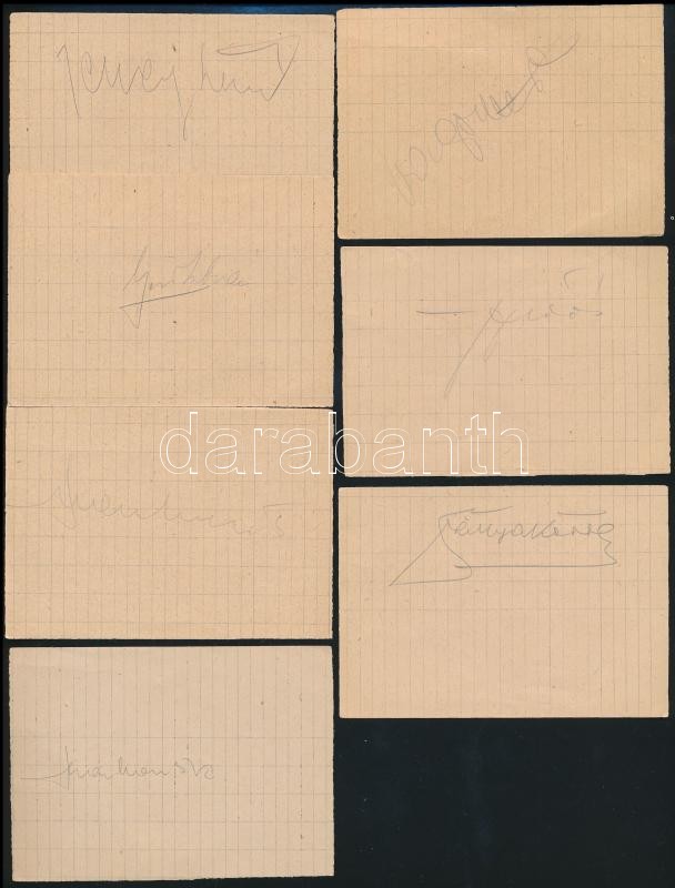 Leírás: Vízipólósok aláírása papírlapokon (Jeney, Vágó II., Szittya Károly, stb.), 7 db