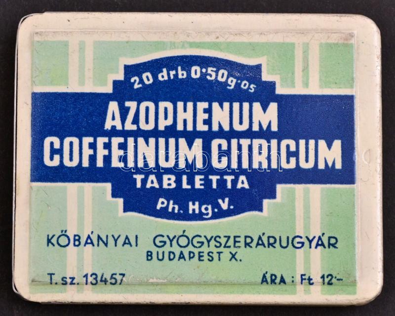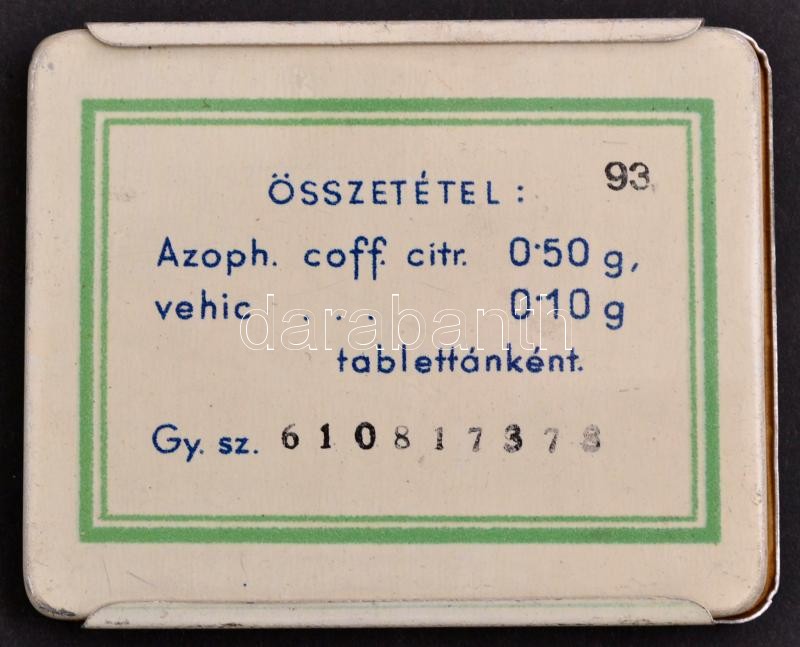Leírás: Azophenum coffeinum citricum tabletta, fém doboz, 7×5,5 cm