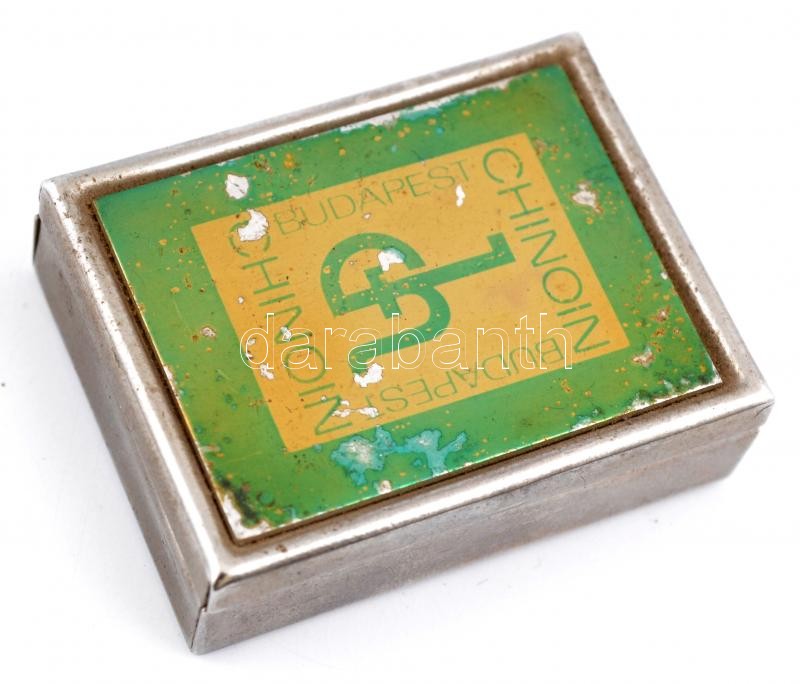 Leírás: Chinoin fém zsebhamuzó doboz, kis kopásokkal, 4×3 cm