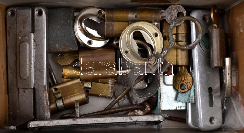 Leírás: Cipősdoboznyi különböző zár, lakat, tolózár, stb.