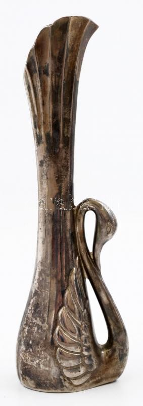 Leírás: Hattyús fém váza, alján karton lap, m: 17,5 cm