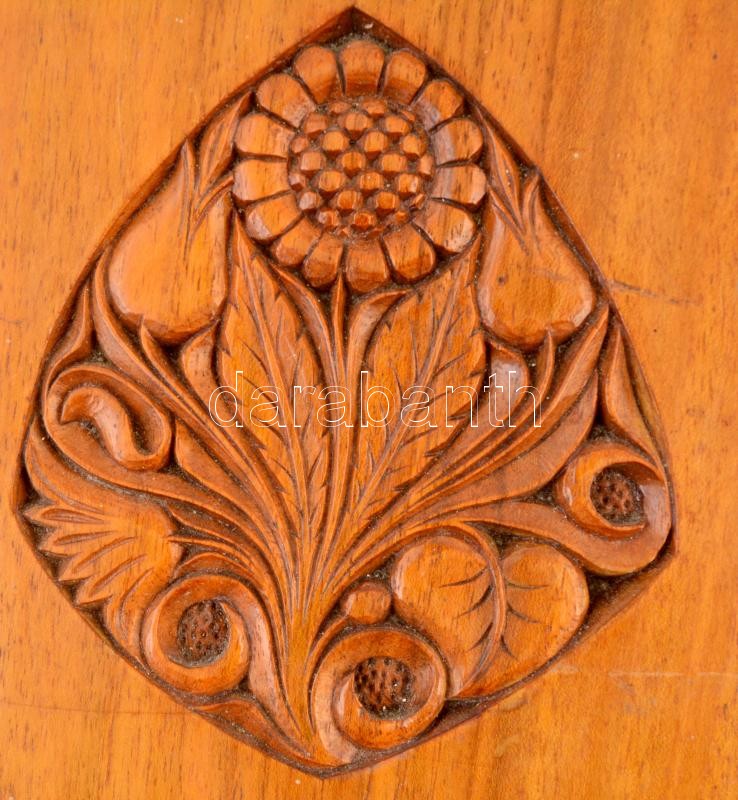 Leírás: Lakkozott fa faragvány 15x18 cm