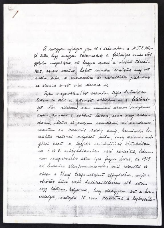 Grassy József (1894-1946) altábornagy, az újvidéki razzia vezetőjének családjának saját kézzel írt beszámolója az újvidéki események, és első sorban az azt követő eseményekről, hadbírósági eljárásról egészen a szökéséig, fénymásolat.
