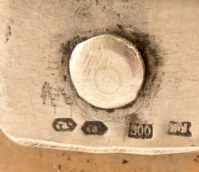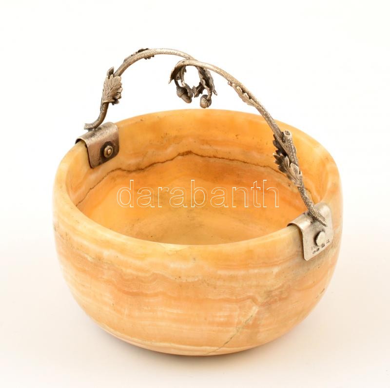 Leírás: Ezüst (Ag.) füles achát kosárka, jelzett, hajszál repedéssel, m:10 cm