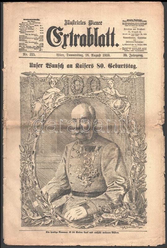Leírás: 1916 Tagespost - Sonderausgabe különkiadás Ferenc József haláláról +1910 Illustrirtes Wiener Extrablatt Ferenc József 80. születésnapja alkalmából