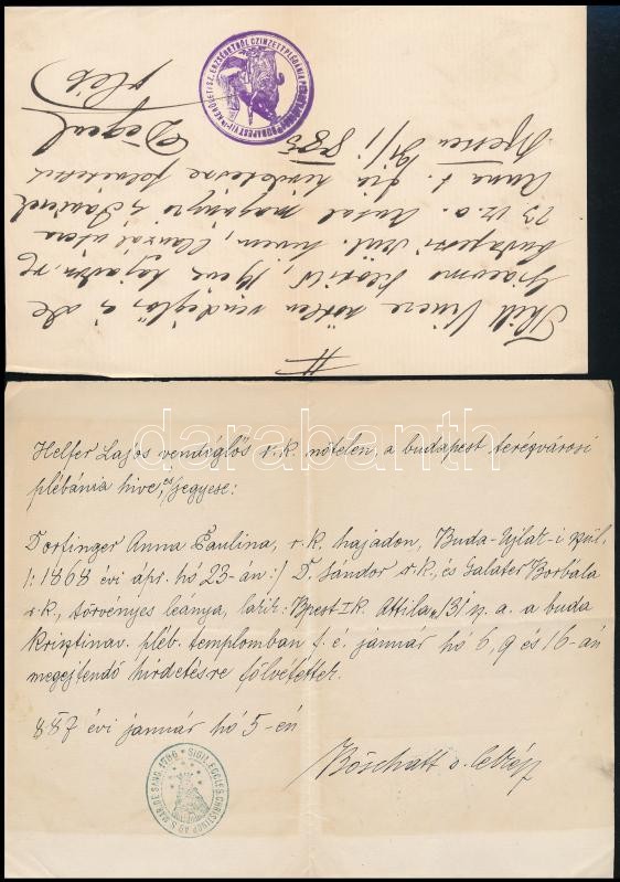 1885-1887 Vendéglős jegyespár egyházi papírjai, 2 db https://www.darabanth.com/hu/356-Gyorsarveres/356.0/Mutargy-papirregiseg-egyeb/Okmanyok~500017/1885-1887-Vendeglos-jegyespar-egyhazi-papirjai-2-db~II2013383