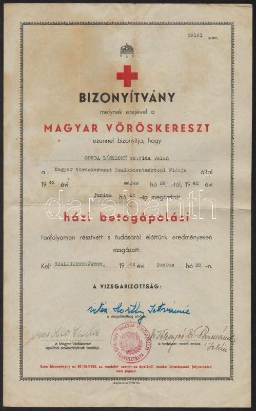 1942 Vöröskereszt bizonyítvány vitéz Horthy Istvánné aláírásával. https://www.darabanth.com/hu/356-Gyorsarveres/356.0/Mutargy-papirregiseg-egyeb/Okmanyok~500017/1942-Voroskereszt-bizonyitvany-vitez-Horthy-Istvanne-alairasaval~II1979338