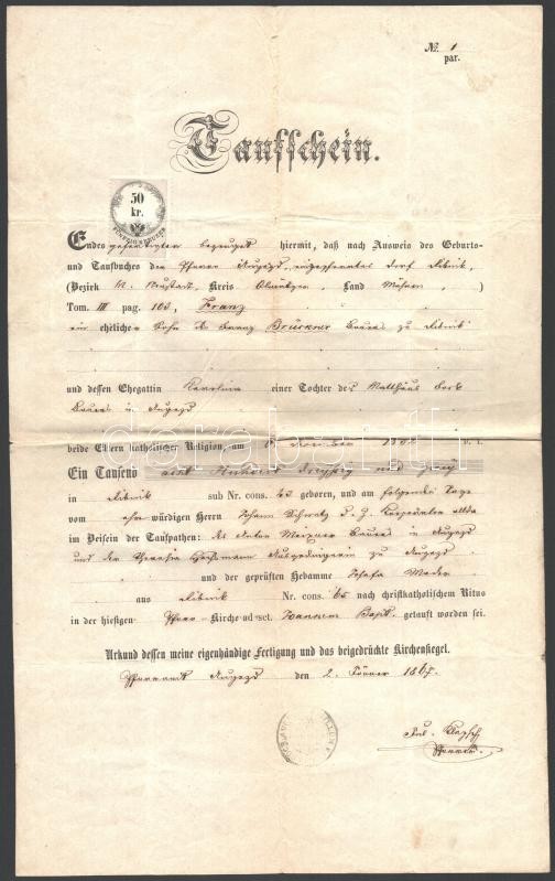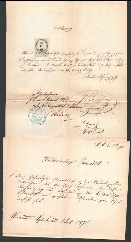 Leírás: cca 1869 3 db okmánybélyeges osztrák és német irat
