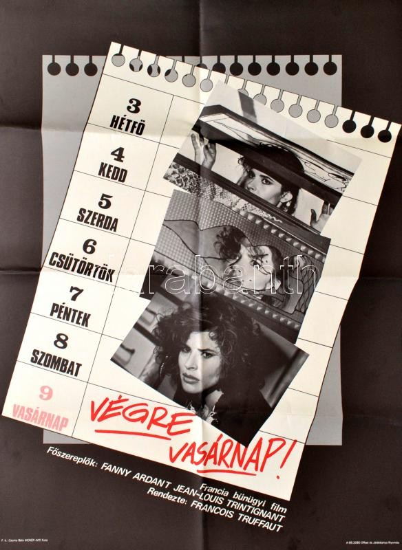 1985 Végre vasárnap Ofszet film plakát, hajtogatva, jó állapotban 57x8... https://www.darabanth.com/hu/356-Gyorsarveres/356.0/Mutargy-papirregiseg-egyeb/Plakat~500031/1985-Vegre-vasarnap-Ofszet-film-plakat-hajtogatva-jo-allapotban-57x80-cm~II1956268