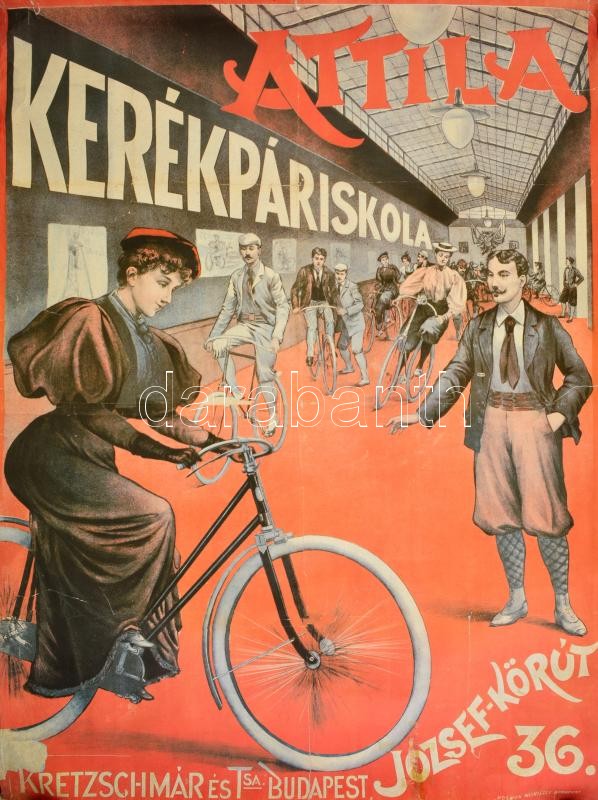 Leírás: "Attila kerékpáriskola" - készült a MAHIR gondozásában, 100+1 éves a magyar plakát, szakadásokkal, 123×90 cm