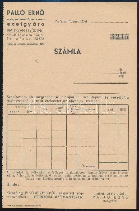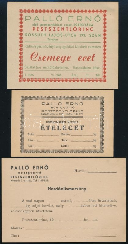 Leírás: Pestszentlőrinc, Palló ecetgyár 4 db reklám nyomtatvány