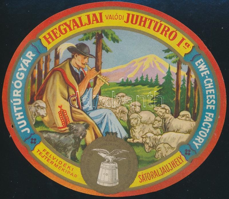 Leírás: cca 1940 Hegyaljai juhtúró címke 13 cm
