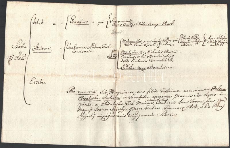 Leírás: cca 1800 Az olcsai Szakra család kézzel írt családfája 38x25 cm