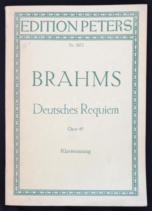Brahms: Ein deutsches Requiem. Lipcse, é. n., Edition Peters. Papírköt... https://www.darabanth.com/hu/356-Gyorsarveres/356.0/Mutargy-papirregiseg-egyeb/Zenetortenet-kottak~500030/Brahms-Ein-deutsches-Requiem-Lipcse-e-n-Edition-Peters-Papirkotesben-jo-allapotban~II2033247