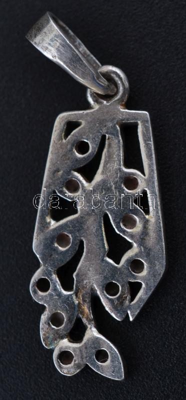 Leírás: Ezüst (Ag) inda alakú, markazit kövekkel díszített medál, jelzés nélkül, egy kő hiányzik, 1x2 cm, bruttó: 1,9 gr.