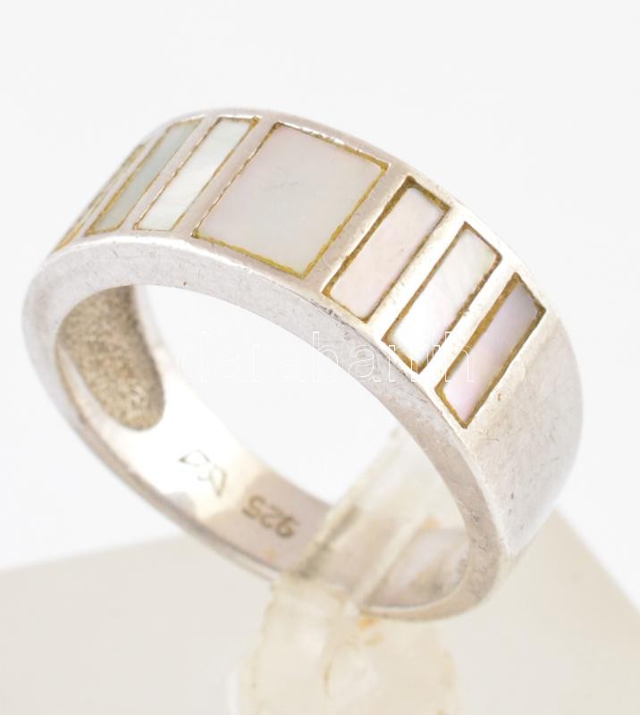 Leírás: Ezüst(Ag) gyűrű, gyöngyház berakással, jelzett, méret: 56, bruttó: 5,5 g