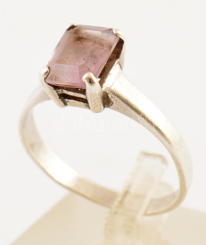 Leírás: Ezüst(Ag) gyűrű, lila kővel, jelzett, kis deformációval, méret: 53, bruttó: 2,4 g