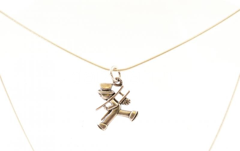 Leírás: Ezüst(Ag) kígyó nyaklánc, kéményseprő függővel, jelzett, állítható h: 45-50 cm, 2,7×1,8 cm, nettó: 9 g