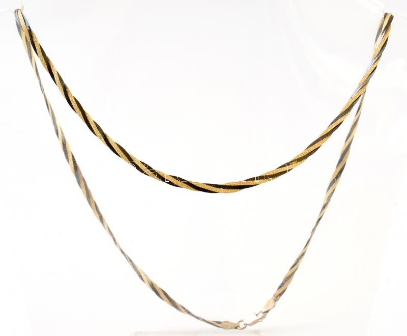Leírás: Ezüst(Ag) "sárga-fekete" fonott nyaklánc, jelzett, h: 50 cm, nettó: 6 g