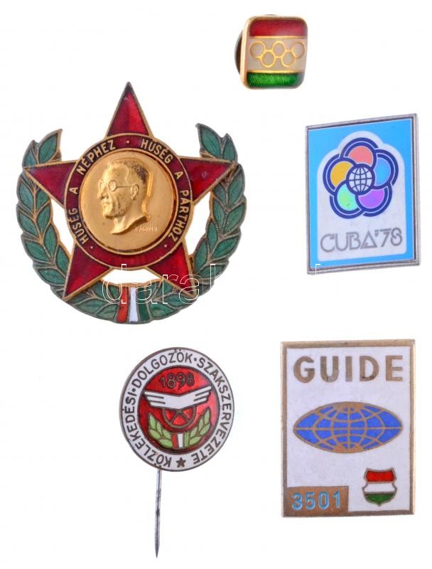 Leírás: 5 db-os kitűző és jelvény tétel, közte "Guide 3501", "Közlekedési Dolgozók Szakszervezete" T:1-