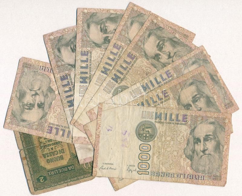 Italy / Venice / Austro-Hungarian occupation 1918. 2 Lire + Italy 1982. 1000 Lire (8x) C:VG