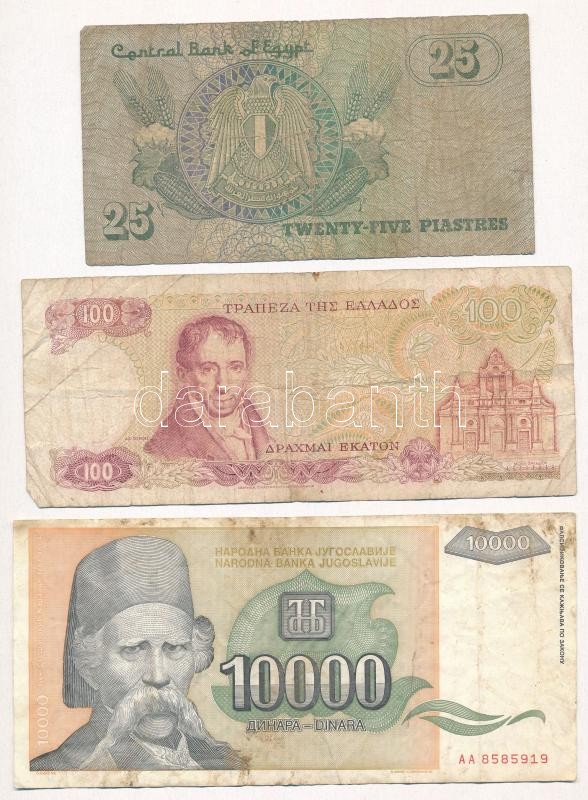Vegyes 5db-os papírpénz tétel, benne belga, venezuelai, görög, egyiptomi és jugoszláv bankjegyek T:III,III-