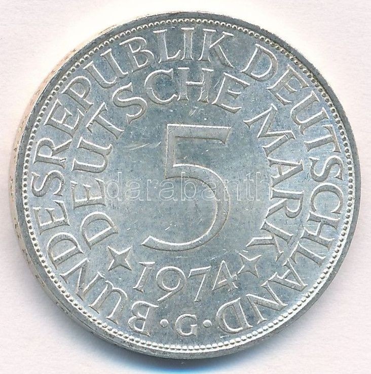 Krause KM#112.1 https://www.darabanth.com/hu/356-Gyorsarveres/356.0/Numizmatika/Kulfoldi-fem-es-ezustpenzek~2500022/NSZK-1972G-5M-Ag-T2--FRG-1972G-5-Mark-Ag-CXF-Krause-KM231121~II2040845