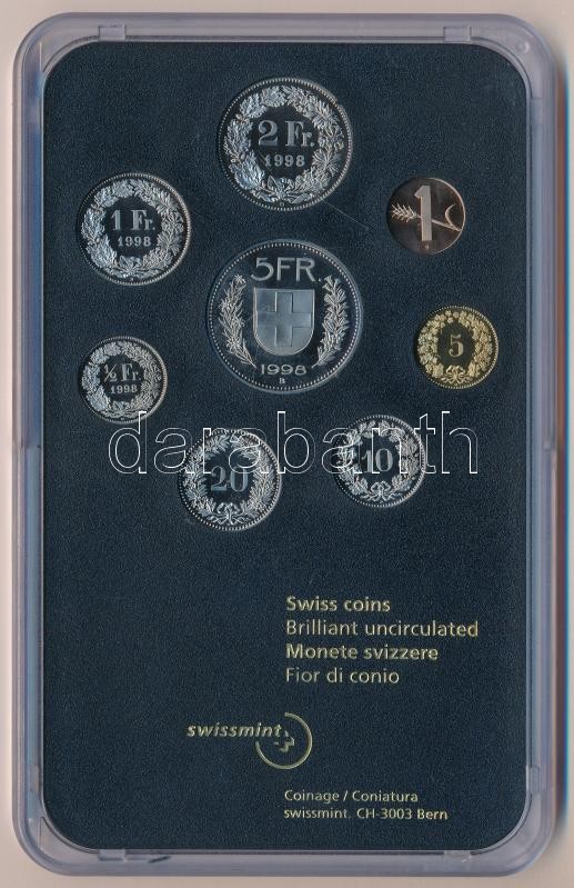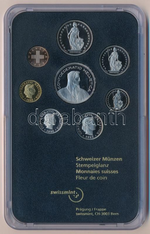 Switzer... https://www.darabanth.com/hu/356-Gyorsarveres/356.0/Numizmatika/Kulfoldi-fem-es-ezustpenzek~2500022/Svajc-1998-1r-5Fr-8xklf-forgalmi-szett-muanyag-tokban-TPP-Switzerland-1998-1-Rappen-5-Fran~II2033748