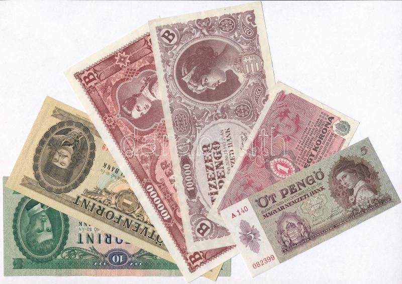 Leírás: 1916. 1K + 1939. 5P + 1946 10.000BP + 1946. 100.000BP + 1969. 10Ft + 1983. 50Ft T:II-III