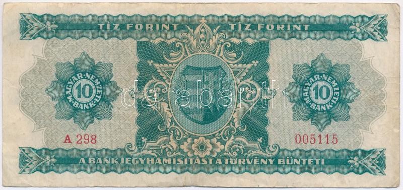 Leírás: 1946. 10Ft "A298005115" T:III- / Hungary 1946. 10 Forint "A298005115" C:VG