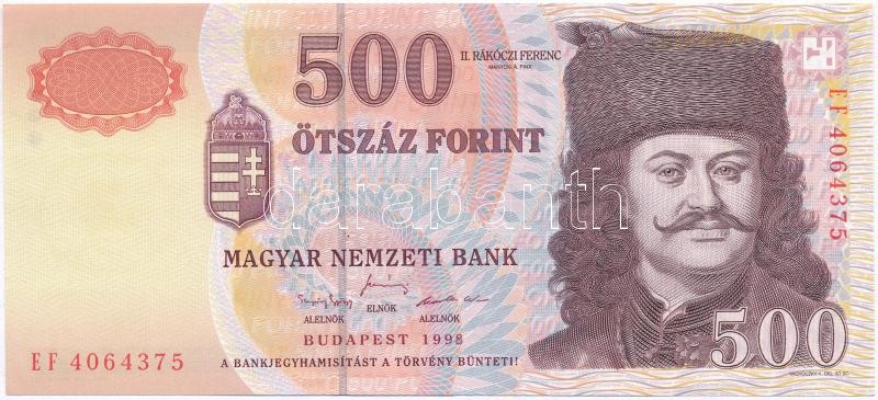 Adamo F54.5 https://www.darabanth.com/hu/356-Gyorsarveres/356.0/Numizmatika/Magyar-bankjegyek~2500008/1998-500Ft-EF-TII-Adamo-F545~II2040889