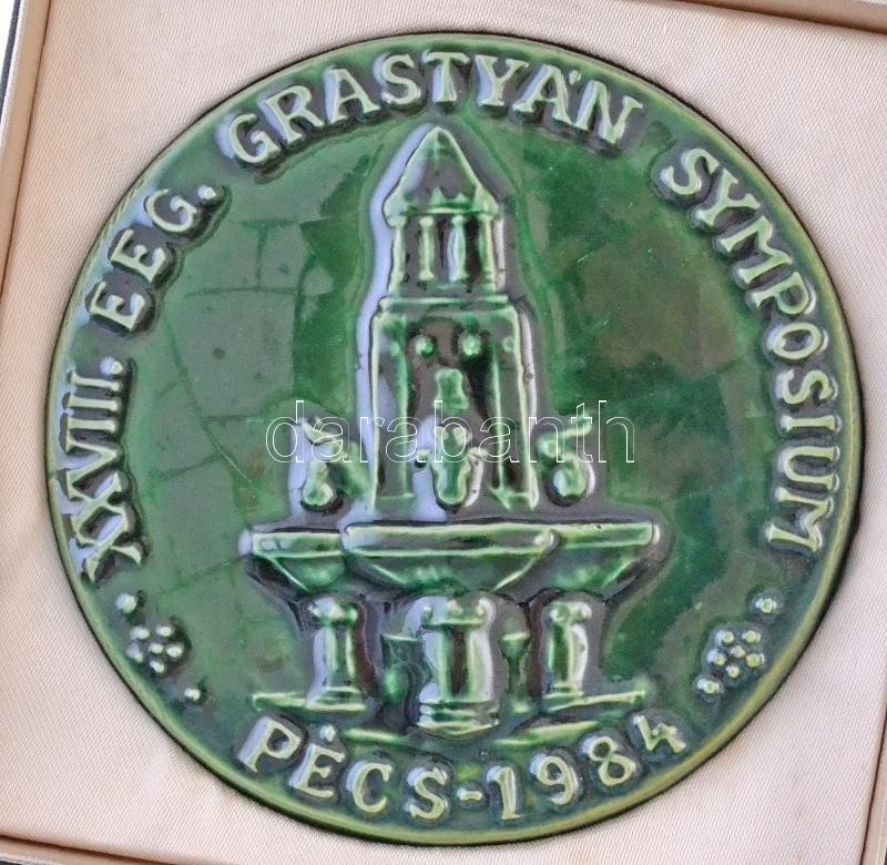 Leírás: 1984. "XXVIII. EEG. Grastyán Symposium - Pécs 1984" mázas kerámiaplakett, eredeti tokban (103mm) T:1-