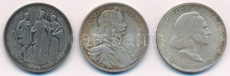 Leírás: 1935. 2P Ag "Pázmány" + 1935 2P Ag "Rákóczi" + 1936. 2P Ag "Liszt Ferenc" T:1- patina