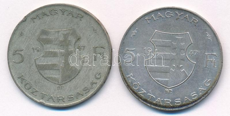 Leírás: 1947. 5Ft Ag "Kossuth" (2x) T:2,3 patina Adamo F8.1