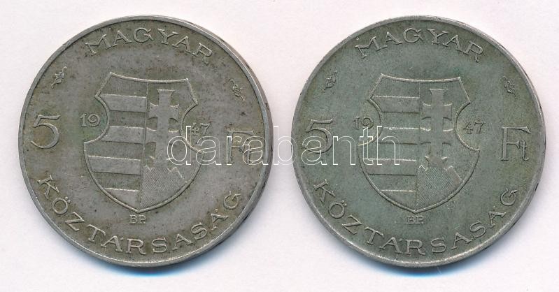 Leírás: 1947. 5Ft Ag "Kossuth" (2x) T:2- patina Adamo F8.1