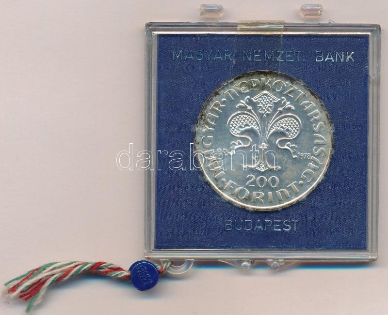 Leírás: 1978. 200Ft Ag "Első magyar aranyforint" plombált, sérült, MNB plasztiktokban T:BU Adamo EM56